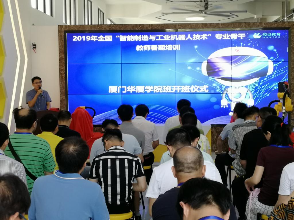 2019年7月15日上午,2019年全国“智能制造与工业机器人技术”专业骨干教师暑期培训班在公司智能制造创新工场开班。北京华晟经世信息技术有限公司副总林燕文先生、伟德体育应用技术研究院经理庄峙厦教授、伟德体育公司党总支书记颜国辉、bevictor副经理周海波副教授等领导出席开班仪式。本次培训共有三期,第一期有35名学员参加,开班仪式由公司公司党总支书记颜国辉主持。