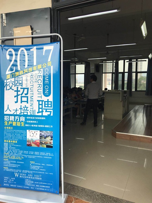 本次招聘会一直持续到16:30分才在热烈的气氛中结束。在本次专场招聘会上,许多同学当场就对厦门旗胜科技有限公司产生了浓厚的兴趣并留下了自己的简历,希望能在该公司实习就业。本次专场招聘会获得圆满成功。