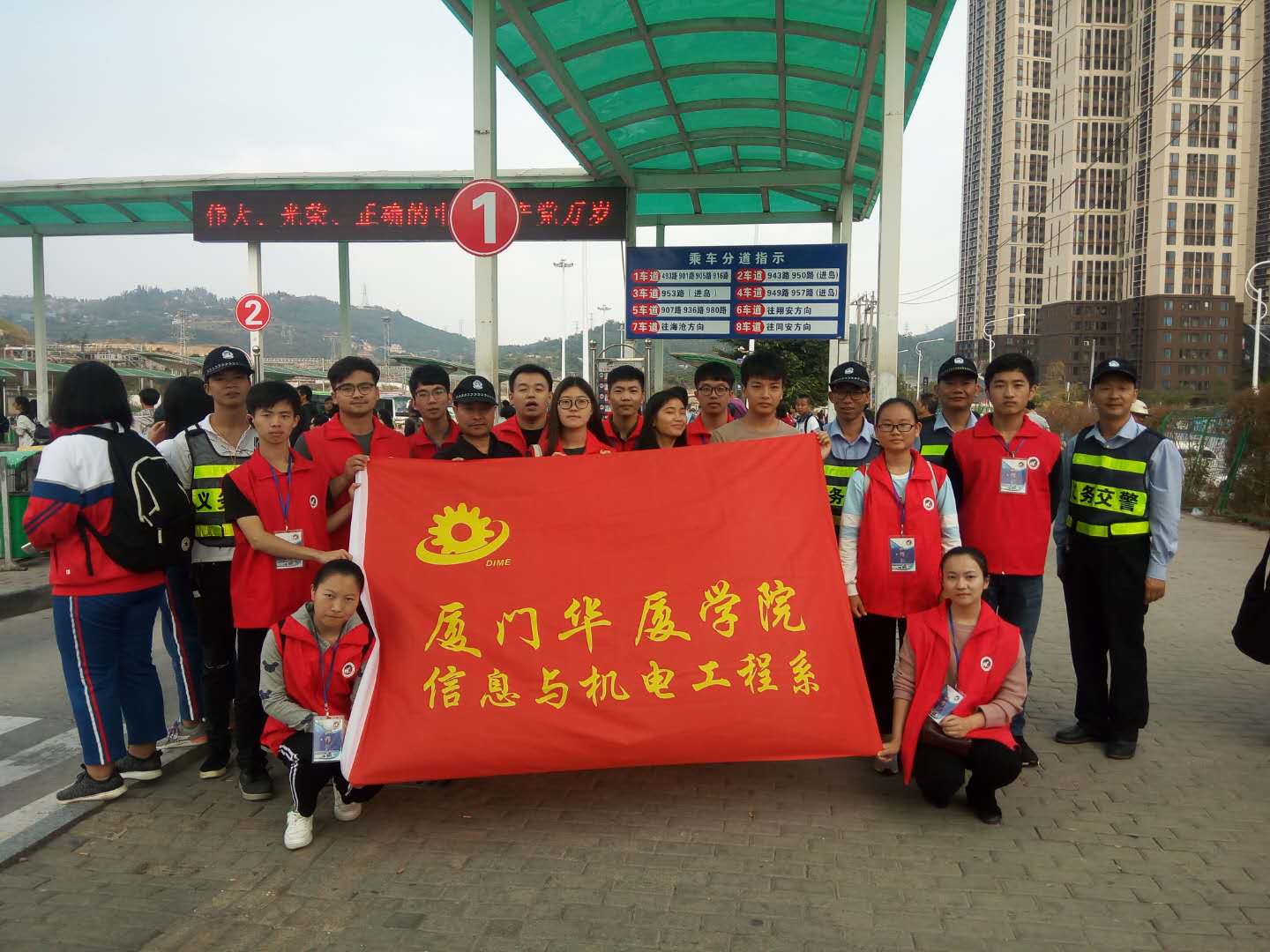 2017年11月14日下午,我系文明督导志愿者小分队在系党总支书记颜国辉老师的带领下在厦门北站开展“文明驾驶行”之“安全宣讲、文明行走”督导志愿服务活动。本次活动旨在督导旅客们文明排队、从斑马线安全行走,并为旅客们解答行程中遇到的各种问题。