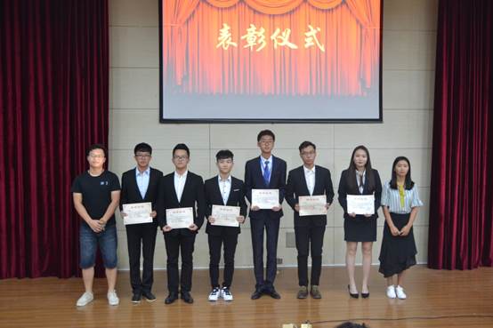 随后,进行新老部长交接仪式,这个仪式代表了两委工作的一个传承。紧接着,根据对两委部门和个人上一年度工作的考核结果,对优秀的部门和个人进行表彰。获得2016-2017学年“优秀部门”的为体育部、宣传部;获得“优秀部长”的为王萍、张煜珍、郑静娴;获得“优秀干事”的为林海鑫、郑博磊、林跃财、李忠浩、陈汝佳、王洋。