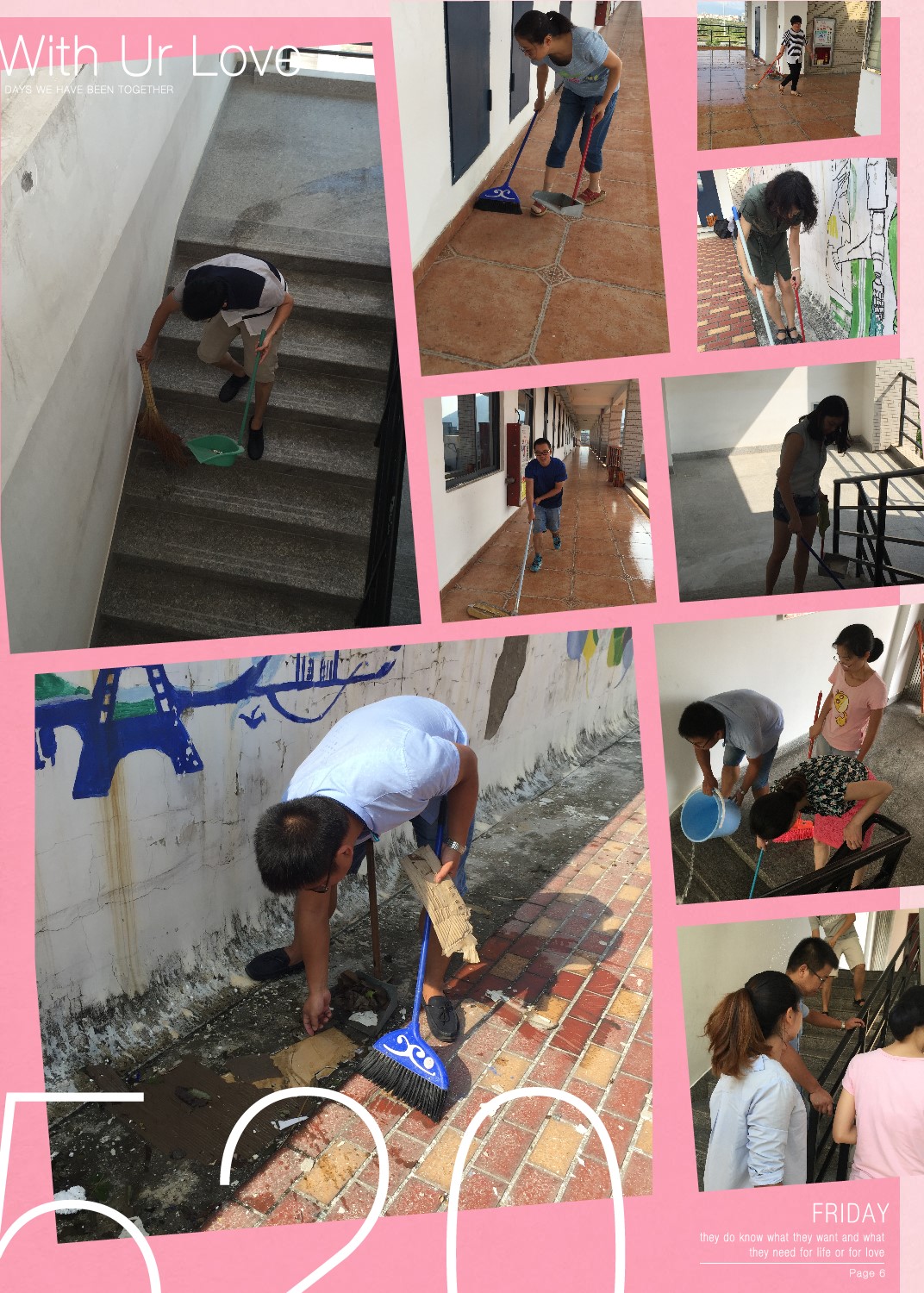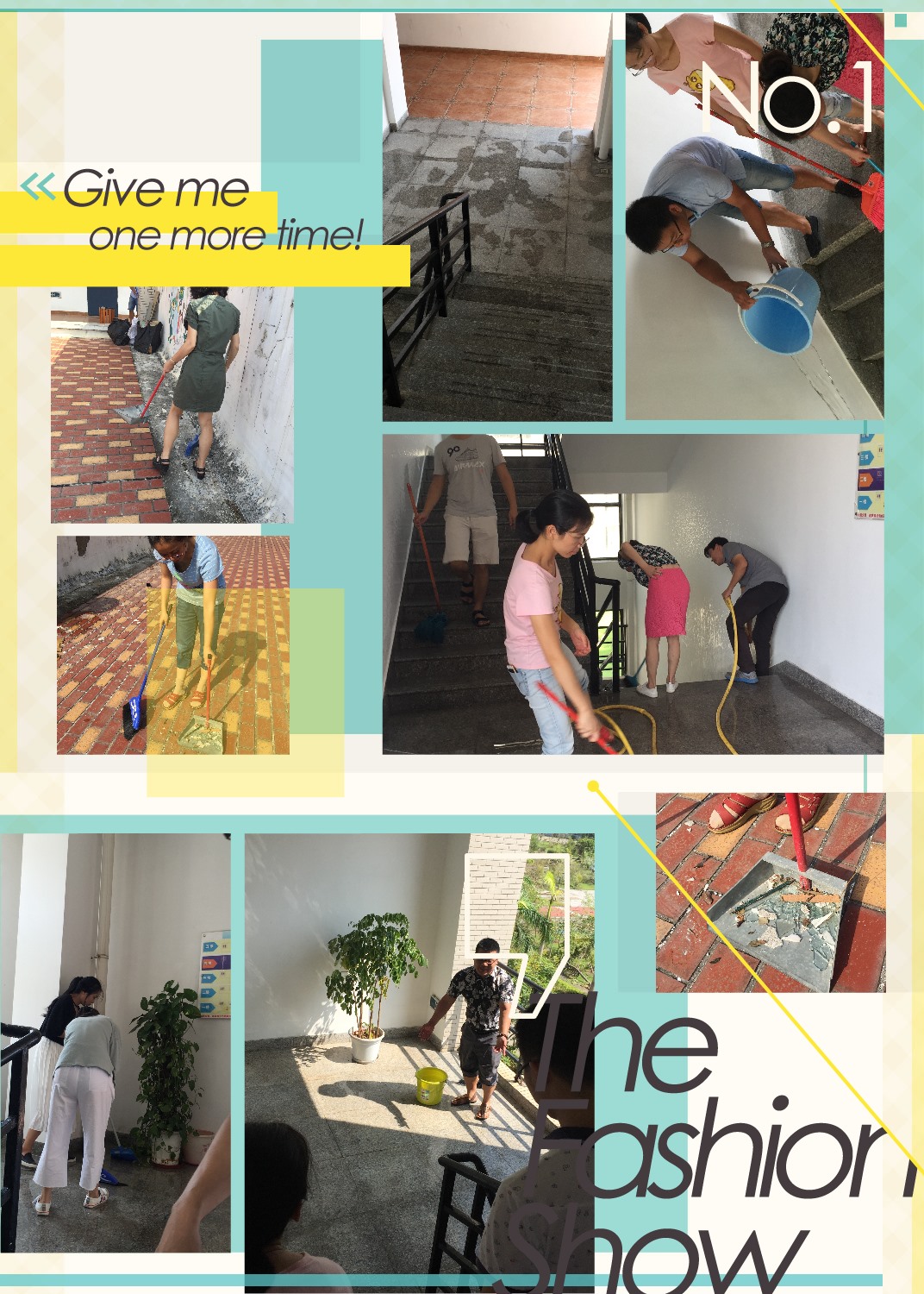 9月18日上班后,老师们便开展积极自救行动。按照公司切块分工安排,系副主任蔡志猛老师组织系部全体教师及部分员工志愿者对大音楼楼层进行认真清理。风灾过后的地板随处可见玻璃渣碎,老师们认真打扫,扫不起来的就动手去捡,为的是怕上课后我们的孩子们割到扎到。经过一个半天的努力终于将大音楼整栋楼清洗干净,将垃圾清理处置妥当,还公司一个干净整洁的教学环境。