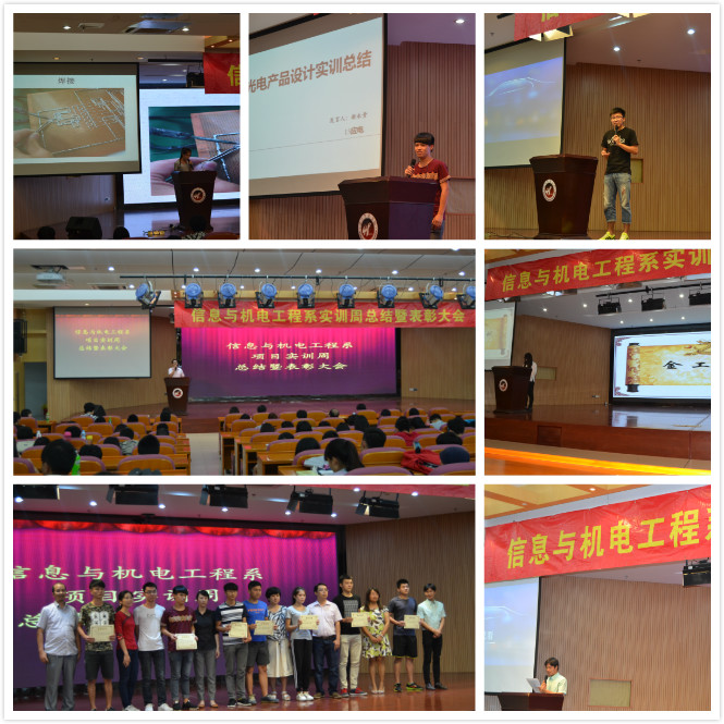 在“总结和表彰大会上”,首先由信息与机电工程系副主任蔡志猛对本次实训周进行总结,蔡主任对我系本次实训周所取得的成绩表示肯定,对同学们精诚协作的精神给予了充分的赞赏;接着由员工代表对实训项目进行介绍;最后由周主任宣布在实训周获奖员工名单,并对获奖员工进行颁奖。