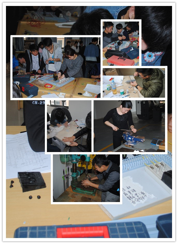 新学年伊始,我系为期一周的实训周项目也正式启动。 本次实训周的主要项目有汽车构造综合实训、单片机实训、汽车市场调查实训、金工实习、.net项目体验实训、php项目体验实训、联想移动课程实训、模型设计及电工实训。其中计算机网络技术专业进行的是.net项目体验实训,通信技术专业对应、php项目体验实训,应电、微电进行联想移动课程实训,自动化技术专业进行的是单片机实训项目,汽车检测与维修技术专业进行汽车构造综合实训,汽电汽车专业则前往校外进行市场调查实训,机电一体化专业进行的是金工实训,工业设计专业进行的是模型设计实训项目,14级的同学则进行电工实训。