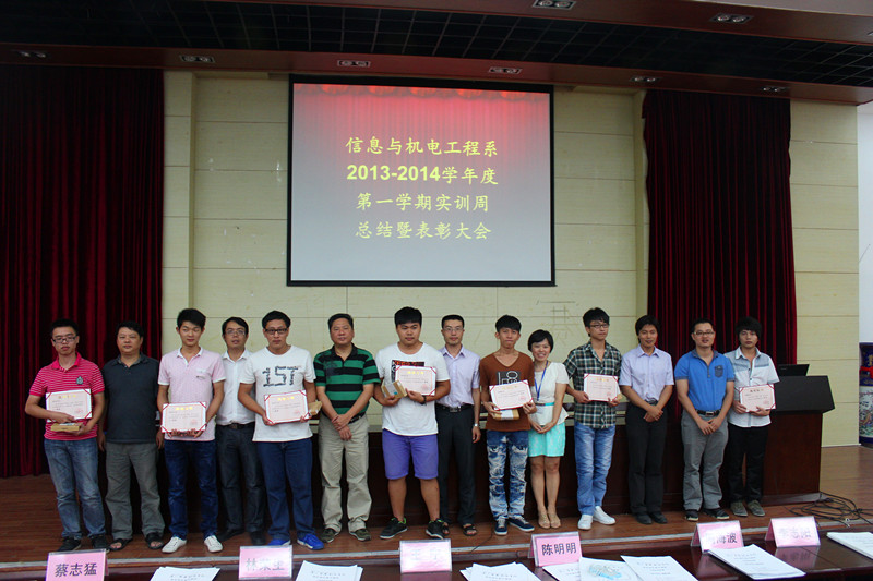 2013年10月15日13点整,“信息与机电工程系实训周总结暨表彰大会”在公司明德厅隆重召开。整个实训周在经过了2012-2013学年第二学期期末的“实训周动员大会”,以及员工利用暑假时间的认真准备后,于本学期第一周顺利完成。本次实训周共有五个项目,分别是:电子产品制作实训、计算机组装与维修实训、综合布线实训、制图测绘实训、金工实训。这五个实训项目是我系各个专业老师精心准备,呕心沥血之作。出席本次大会的主要有华厦公司经理助理、教务处处长王宁,工科党总支书记林荣生,信息与机电工程系主任陈明明,副主任周海波,主任助理蔡志猛,教工党支部书记李志阳,课程建设指导委员会委员邓鹭涛,实训周指导老师及各班班主任。