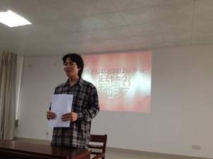4月21日上午,我系2012届毕业设计答辩会在大音407会议室成功举行,徐武廷老师为本次答辩委员会主席。