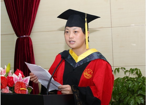 图十二:优秀毕业生代表,09级药品质量检测专业(1)班的吕靖同学发言。