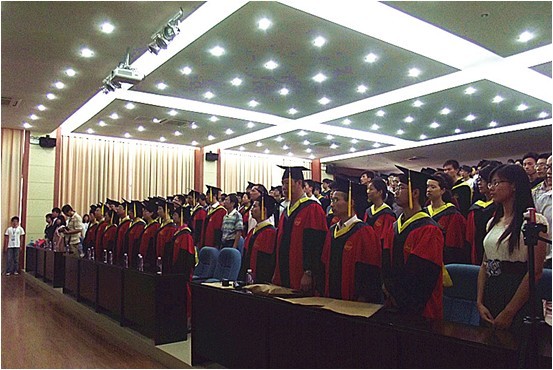 各部处、各系领导和教师以及部分毕业生亲友参加了毕业典礼。毕业典礼在合唱毕业歌《朋友》中圆满落下帷幕。步出毕业典礼现场后,全体毕业生合影留念,毕业的幸福瞬间在扔帽仪式中定格,成为永恒的美好回忆。