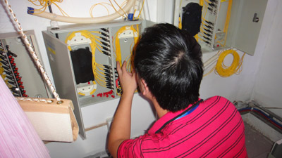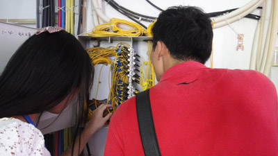 今天,我部通信技术专业的陈明明、汤虹两位老师赴09通信班位于殿前的校企合作单位——厦门纵横建设开发有限公司进行员工课程实践检查,并随同光缆三队的一组员工进行了现场随工学习。虽然早已入秋,但亚热带秋日的骄阳已将员工平日白皙的皮肤明显晒黑。整整一个上午,我们马不停蹄地驱车由殿前公司到火车站附近的广通借领机房钥匙,再赶到植物园东门、远洋大厦、政协大厦等机房做光缆资源普查。