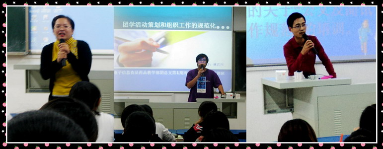 此次培训班主要内容是针对支部两委部长及干事而开展的专题讲座,旨在通过培训提高电子信息食品药品教学部团总支两委干部及干事的工作能力,进一步规范他们的各项工作。本次培训由王晓俊、刘昌俊、林若川和陈桂英等老师分别就思政、写作、活动策划和数据操作等方面做了四次专场讲座。通过培训,参训的同学们纷纷表示受益匪浅,将齐心协力拓展党团建设,更好地服务于电子信息食品药品教学部的广大同学。