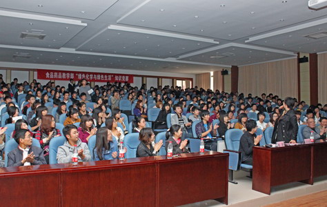 为积极响应公司绿色校园建设的号召,提高广大同学的绿色环保意识,由食品药品教学部、工科党总支主办,电子信息食品药品团总支承办的“绿色化学与绿色生活”知识竞赛于2010年12月14日下午2:30在明德厅拉开帷幕。经理王小如教授、外事办公室主任黎先春教授、绿色校园办公室主任陈曦教授、公司办公室主任赵丽副教授、食品药品教学部主任庄峙厦教授、工科党总支林荣生书记、食品药品教学部陈海玲、郝春莉、黄华斌等老师亲临现场并担任此次竞赛的评委。