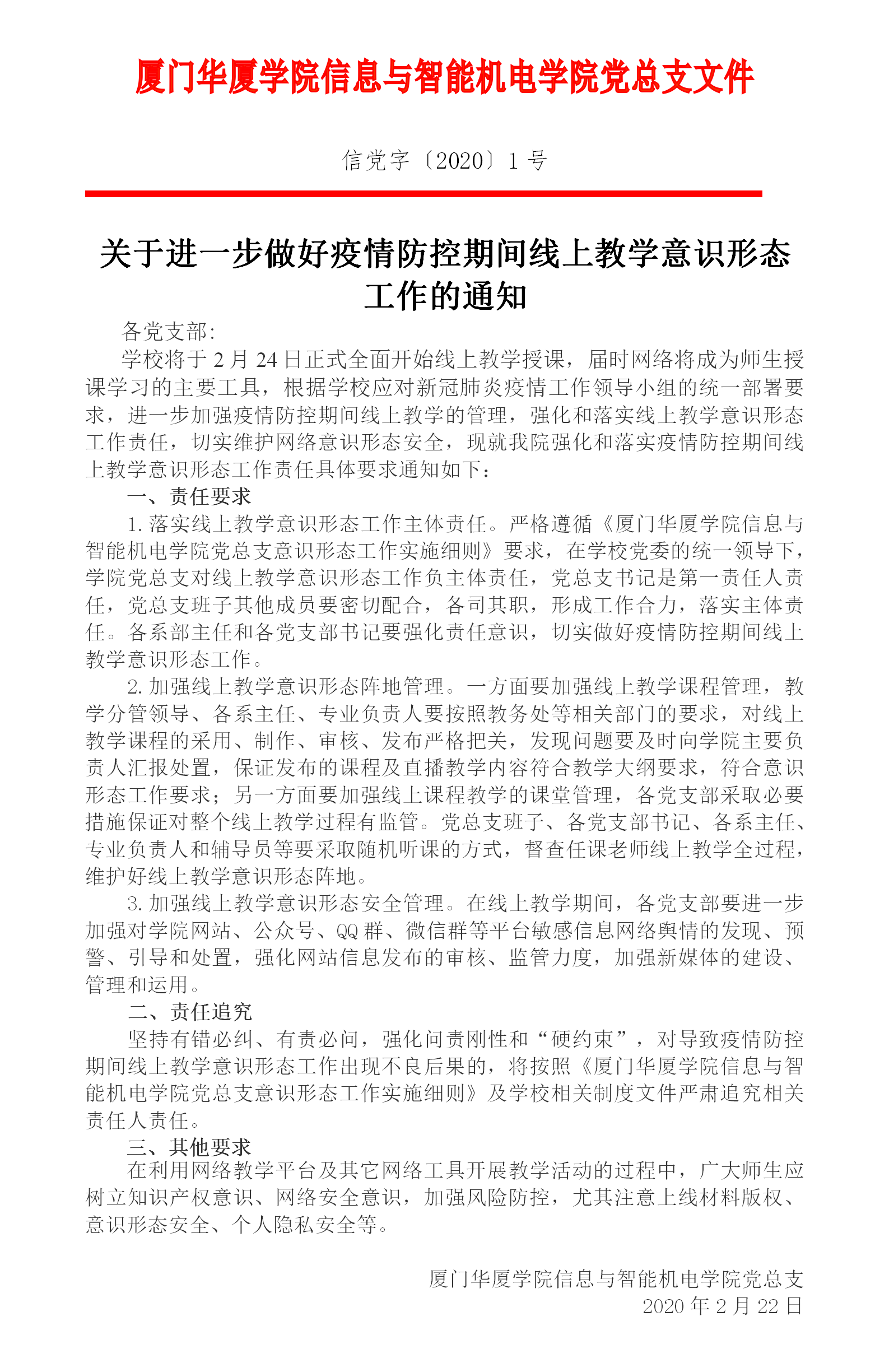 (信息公司)〔2020〕1号关于进一步做好疫情防控期间线上教学意识形态工作的通知