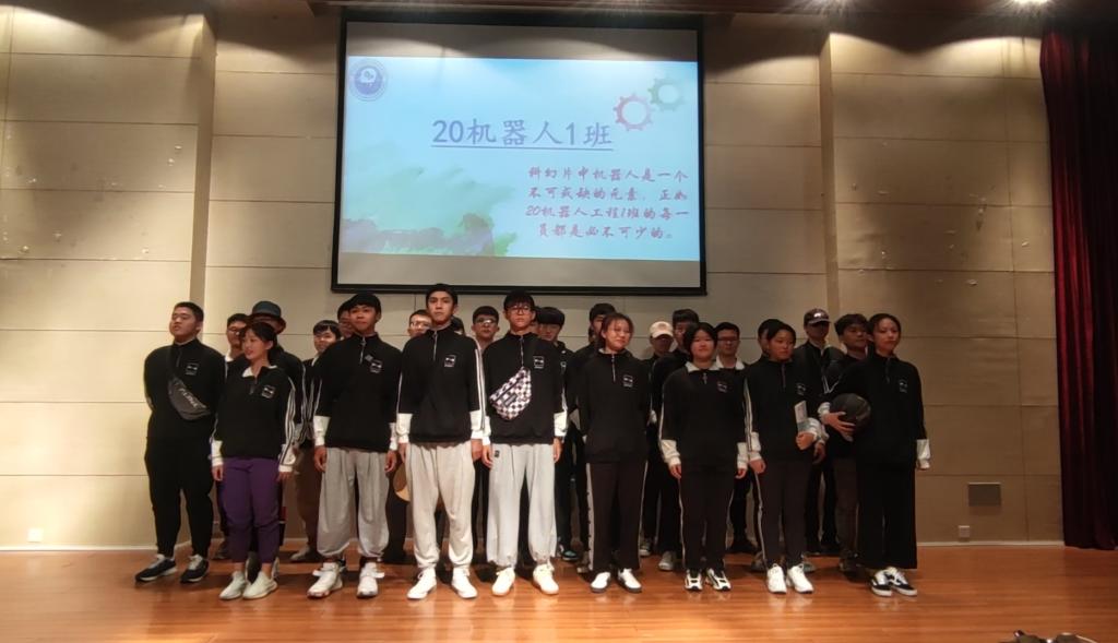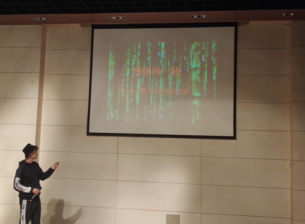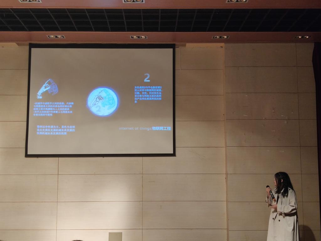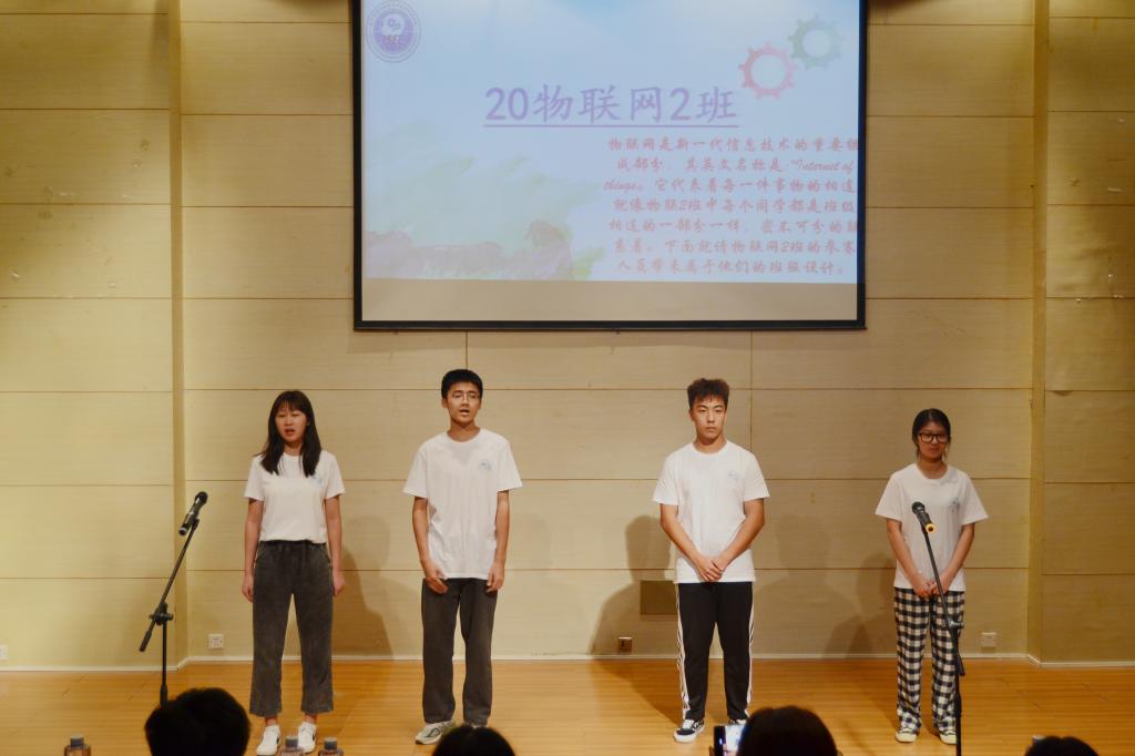 班徽是由一只机械手和一只物联网构成的手,以及虚拟地球等组成。班徽中的两只手通过指尖触碰解释了“物联网”的意思:科技与网络相互连接,十分生动形象!在表演展示环节,四位同学通过合唱《年少有为》表现出了他们的默契配合以及优秀的表现力,我们希望信息学子也都能奋力拼搏,年少有为!