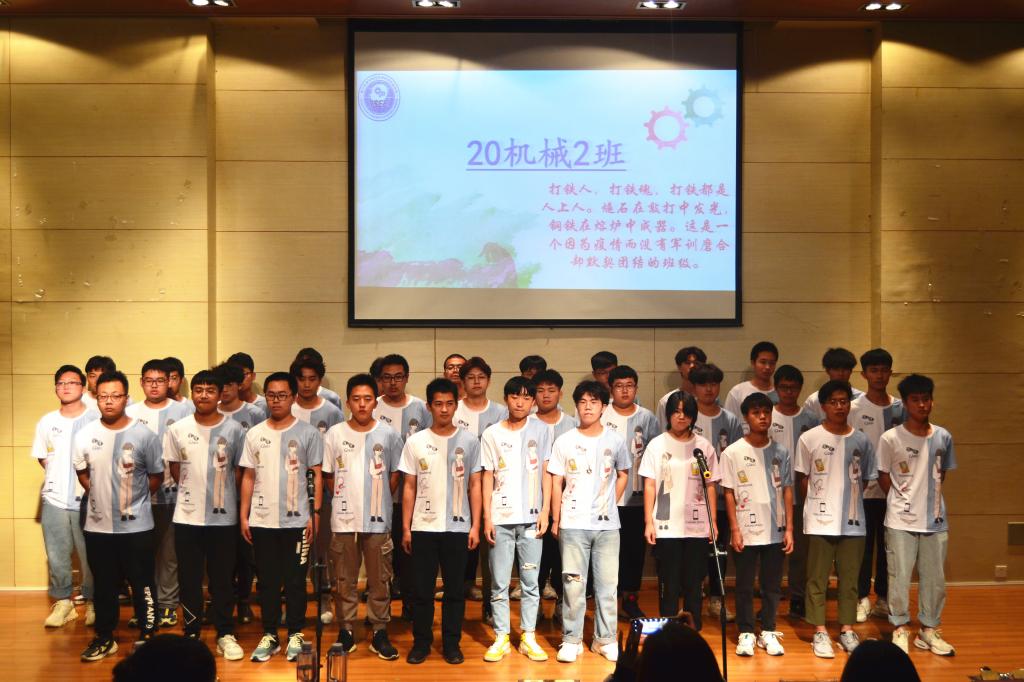 班徽中通过英文和一个大写的“壹”字来凸显出班级特点。其最中心的壹所在的位置位于标志正中心,被一台风标志所包围,凸显出努力成为“台风眼”的奋发向上的积极精神。他们合唱了《当那一天来临》这首红歌,将我国解放军英姿飒爽、英勇向前的精神毫无保留地展现了出来。