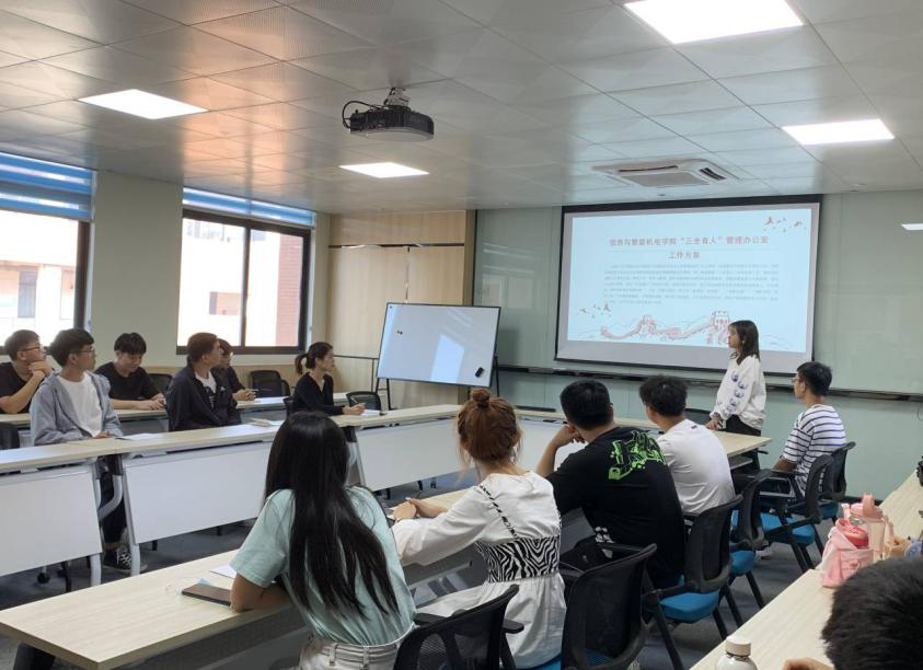 本次会议由三全育人办公室副主任徐春程同学主持。首先,她向全体干事简单的介绍了三全育人办公室的工作方案和组织机构。接着,各部门部长以及副部长上台介绍了各部门的职责,加深干事们对部门的了解,同时也加强了各部门干事的归属感。