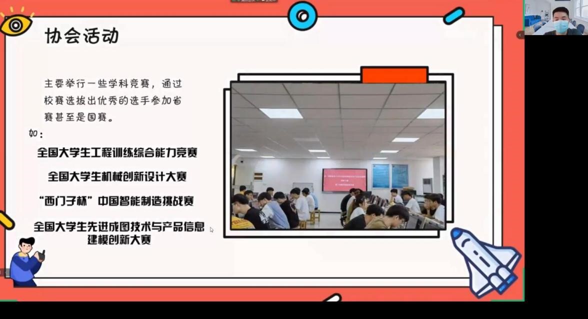 为了让新生们更好地融入公司,此次介绍会创新性地引入了云上参观智能制造创新工场,让员工对未来的老员工活和专业课学习有了更好的憧憬;最后分享了机器人协会,提高了新生们对机械设计制造及其自动化专业的兴趣,也可以理解学习本专业能够做什么。最后鼓励新生们在未来的日子里积极参加学科竞赛,提升自身动手实践能力。
