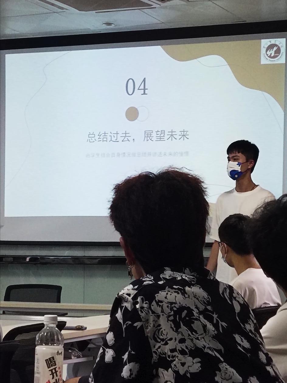 再次,由2020级通信工程(专升本)1班黄苗健同学上台分享自身经历和心得体会,表示会将得到的助学金用于正途,并保证一定会好好学习知识和技能,未来回报国家、社会、公司的资助之恩。