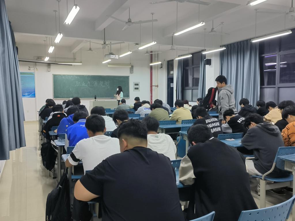 22通信1班开展了“职业生涯规划”主题活动,本次班会引导同学们加强对职业生涯规划的意识,坚定自己的职业目标,并通过对自己职业生涯规划提问的方式,明白自身的不足,以及需要弥补的地方,认识自身缺点,不断提高自己,同学们认真倾听,相互讨论。