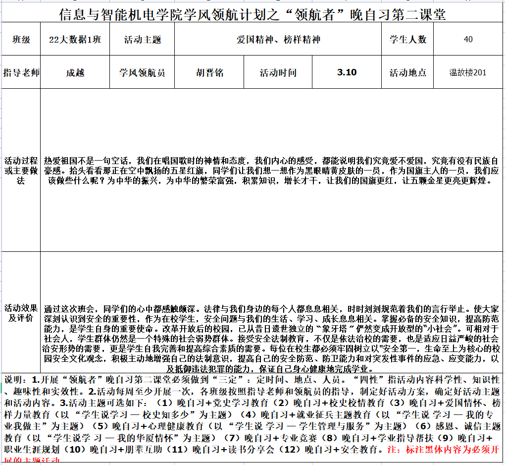 学风领航计划之“领航者”晚自习第二课堂记录表