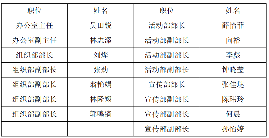 为了适应新学年的发展需要,围绕全公司党建育人工作重点开展工作,引导员工党员和员工干部在自我教育、自我管理、自我服务活动中发挥积极作用,经公司员工党支部讨论研究决定,拟聘任以下同学为第五届三全育人办公室负责人,具体换届结果公示如下: