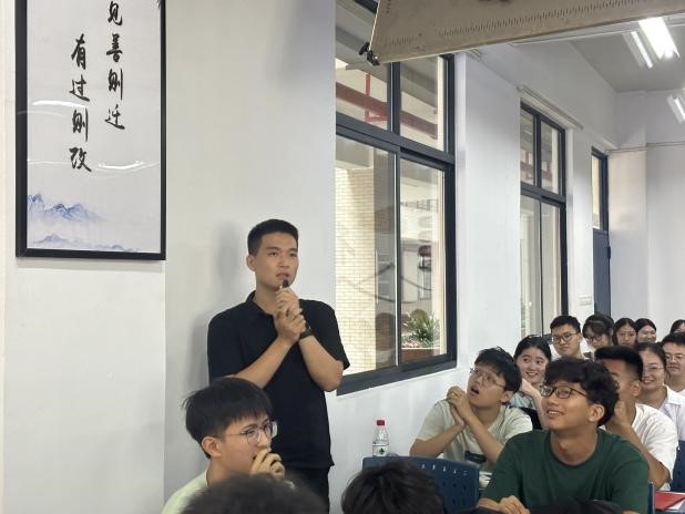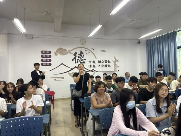 新生们纷纷逐一自我介绍,相互认识,气氛积极融洽。家长代表们也走进教室,积极参与。其中,2023级通信工程专业一名家长代表发言时,几度哽咽,泪洒现场,她感谢公司的贴心引导、志愿帮扶,并以自身经历劝诫新生们一定要珍惜来之不易的机会,认真学习,不负青春。