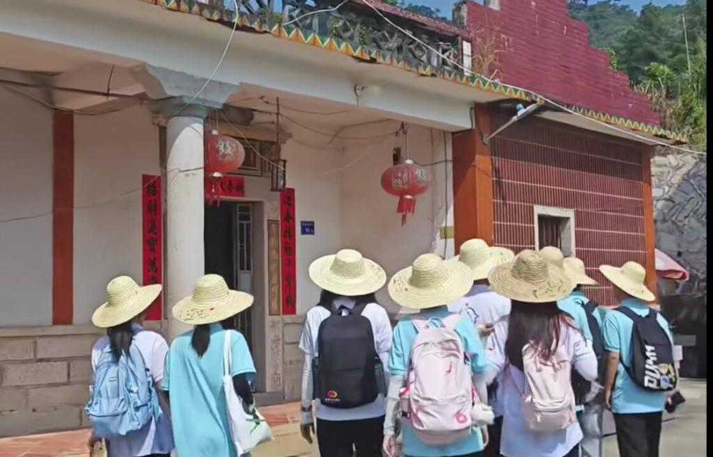 上午10:30,阳光明媚,金辉洒在成员们脸上难掩的雀跃,待大家乘坐观光车到达目的地后,荏畲村村委陈志伟书记与当地村民热情好客地邀请实践队成员们品尝柚子。