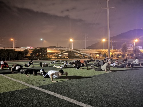 晚上8:30,运动员们准时到达指定训练地点。正式训练之前,运动员们慢跑一圈进行了热身,然后手臂伸展、弓步压腿等一系列准备运动,使自己快速进入运动状态,为接下来的体能训练做好准备。紧接着,我们安排了统一的体能训练,首先是变速跑训练,其次是蛙跳训练,最后是俯卧撑训练等。在整个训练过程中,公司运动员们态度认真积极,体育部干事们组织有序,大家都在为即将到来的运动会积极准备着!