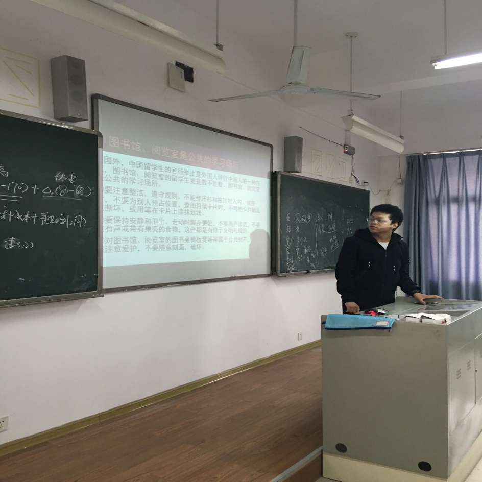 2016年12月14日,本班开展了一次关于文明礼仪的主题班会。本次班会由本班学习委员吴臣宇同学主持,辅导员黄夏老师和全班同学出席了班会。