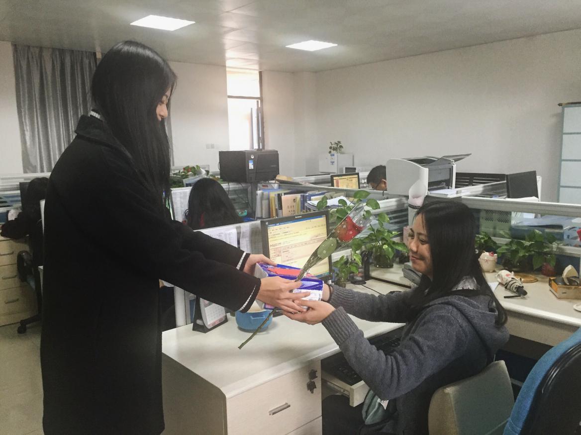 阳春三月,又迎来了一年一度的“三˙八女神节”。3月8日上午,我系员工自发的来到老师的办公室,为我系女教师们送去了节日的祝福,并向女神们送上他们精心准备鲜花和贺卡。