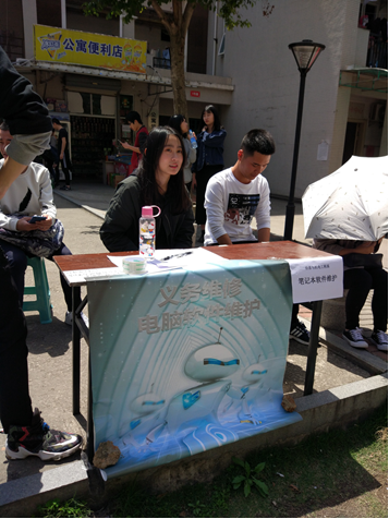 2017年3月27日-28日,我系志愿者协会于宿舍区小广场开展了 “电器义务维修与笔记本软件维护”志愿服务活动。本次义务维修活动提供各种中小型电器的维修服务及软件安装的现场教学帮助,例如系统重装,PS、CAD、计算机等级考试应用安装,校园网客户端维护等等。