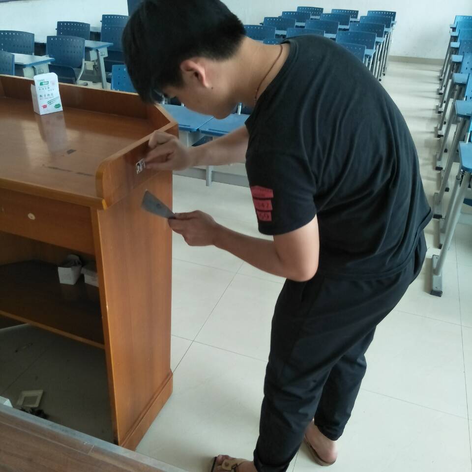 参与活动的全体成员带着小铲子、抹布等工具清理贴在教学楼门窗、桌椅和墙壁上的网贷广告,本着不怕脏不怕累的精神,展现了当代员工的精神风貌,以铲除小广告的方式为杜绝校园网贷献出自己的一份力量。
