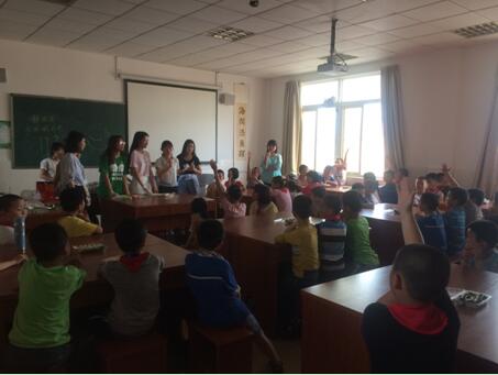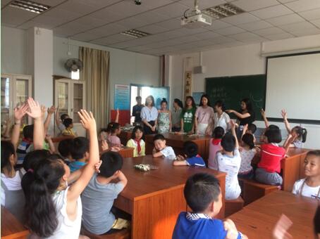 在课堂上,志愿者们在讲台上认真地演示做法,并且请小朋友亲自上台体验制作乐趣,极大地激发了小朋友学习的热情。制作之余,小老师们走下讲台与小朋友进行亲密互动,整个课堂充满欢声笑语,其乐融融。不知不觉中,已近黄昏,志愿者们依依不舍的与小朋友告别,结束了这次活动。