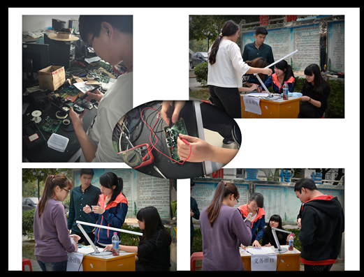 本次义务维修家电是一次利用专业知识竭诚为广大师生服务,提高自我实践能力、培养团队协作的活动。