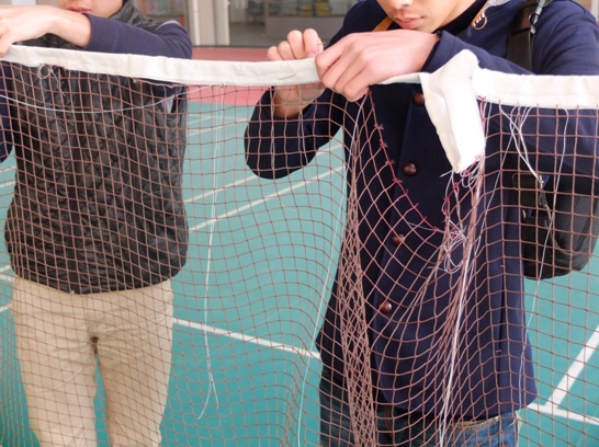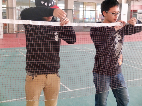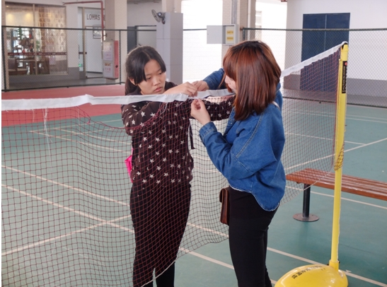 11点30分,志愿者们到达员工活动中心羽毛球场后,便开始了一阵穿针引线的缝补工作,发扬不怕苦,不怕累精神,认真完成了公司羽毛球场球网的修补活动,期间个别志愿者不甚手指被刺破,但是他们还是坚持以认真,严谨的态度完成了修补工作。