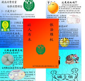 海报通过认识篇、求知篇两个版面大力宣传“3.15消费者权益”知识,解释说明3.15的概念、宗旨、历史由来,并通过设问的形式说明何为侵权;而实用篇、漫画篇两个版面则采用案例和漫画的方式,形象生动的宣传消费中的真假和诚信问题。