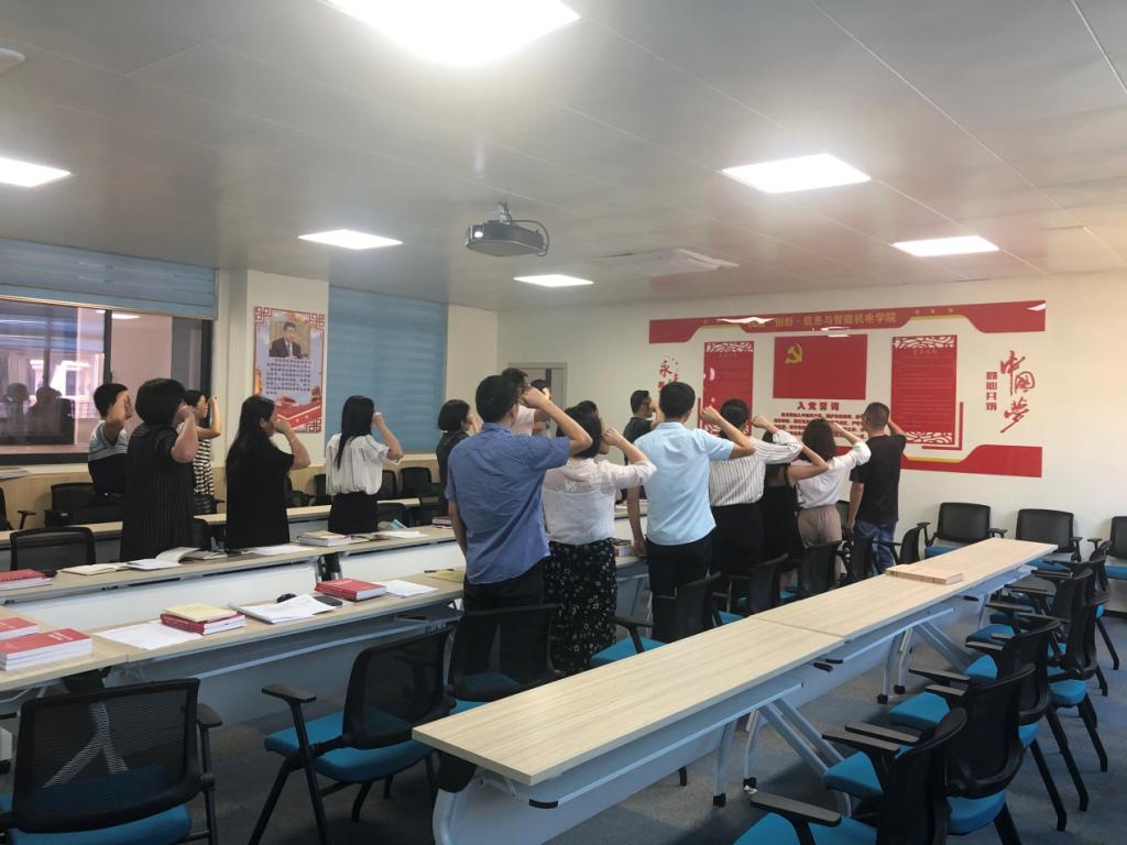 仪式的最后,公司党总支组织委员、经理助理陈博文同志带领全体党员重温入党誓词,一句句铿锵有力的入党宣誓让在场的每一位党员热血沸腾,激励全体党员不忘初心,牢记使命,不断进取,奋斗终身。