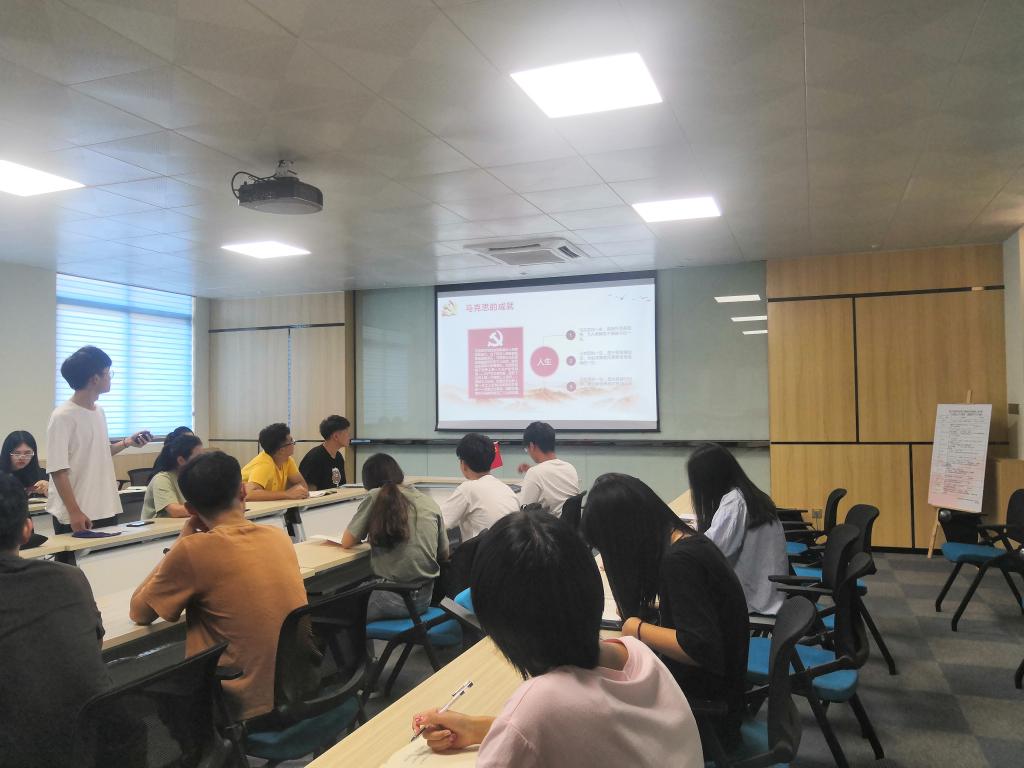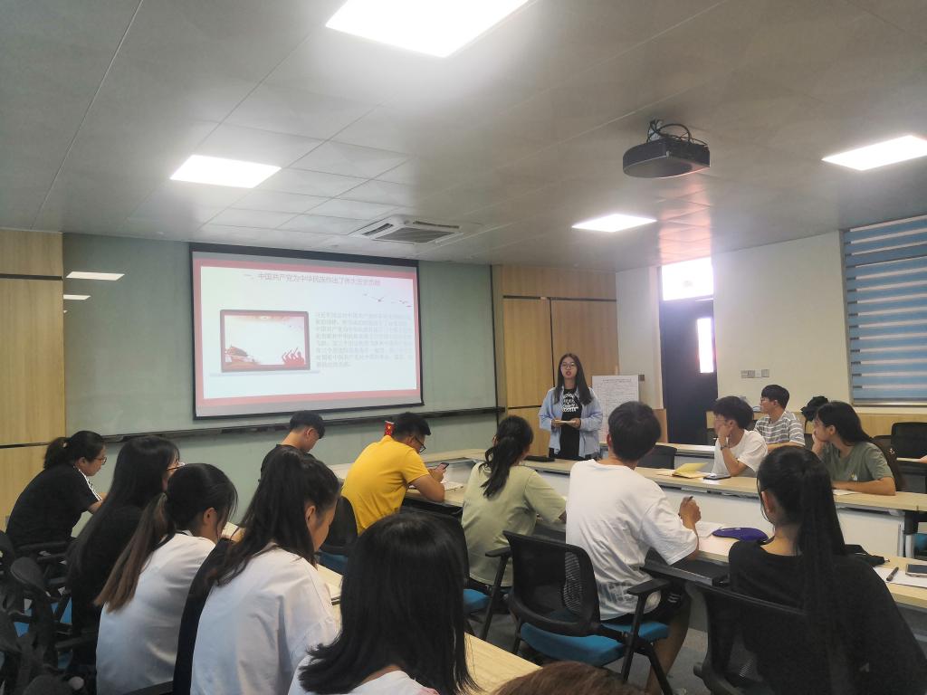 第一小组代表林烺清同学就“在纪念马克思诞辰二百周年大会上的讲话”这一内容进行分享,讲述了马克思主义信仰是全人类文明的结晶,是科学性与现实性的统一,是崇高性和实践性的结合。紧接着第二小组代表陈孟婕同学就“在庆祝中国共产党成立95周年大会上的讲话”这一内容进行分享,着重强调95年来的历史证明了中国共产党领导中国人民开辟的中国特色社会主义道路是正确的,必须长期坚持、永不动摇。之后由其他各个小组的代表同学分享了《习近平关于“不忘初心 牢记使命”重要论述摘编》的学习心得,均阐明了无论遇到什么问题,要坚信我们有习近平新时代中国特色社会主义思想的指导、有党中央的坚强领导、有中华民族的强大凝聚力,一切困难都可以战胜!