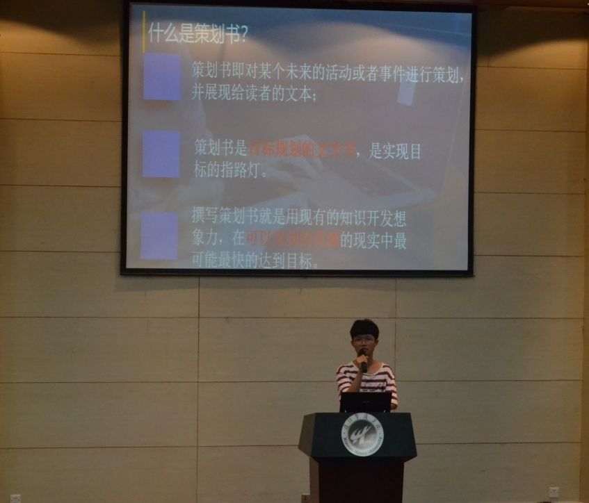 然后,林烺清同学围绕策划书的书写进行讲解,结合实例强调了书写策划书时的注意要点。随后,团总支文娱部副部长胡洲琨同学通过简洁明了的ppt向大家展示了制作ppt的基本内容,介绍了超链接的使用方法及操作步骤。最后,团总支宣传部部长张能沣同学围绕文档命名,撰稿技巧,文稿排版以及摄影构图方面展开培训,强调撰稿时要做到文章结构清晰,语言精炼。