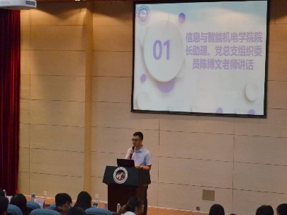 (图为:经理助理、党总支组织委员陈博文老师致辞)