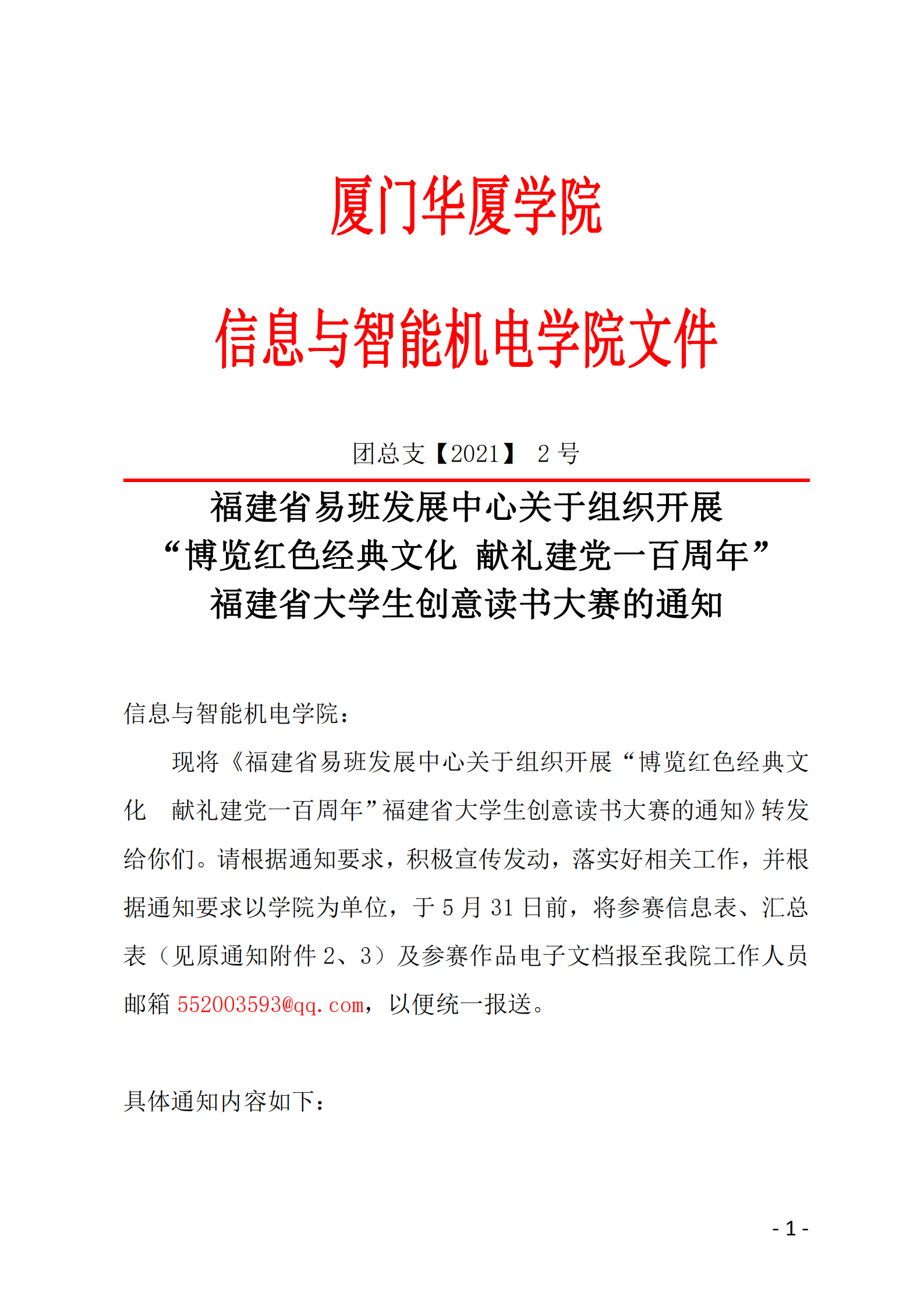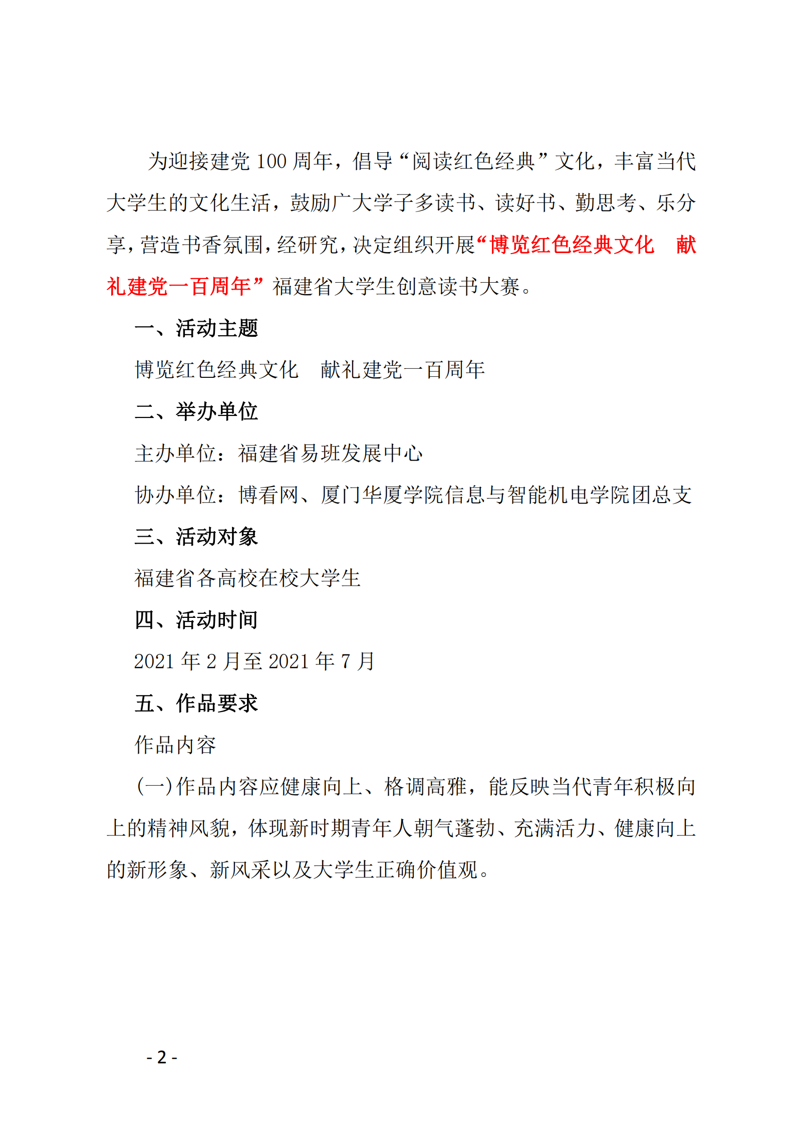 福建省易班发展中心关于组织开展“博览红色经典文化 献礼建党一百周年”福建省老员工创意读书大赛的通知