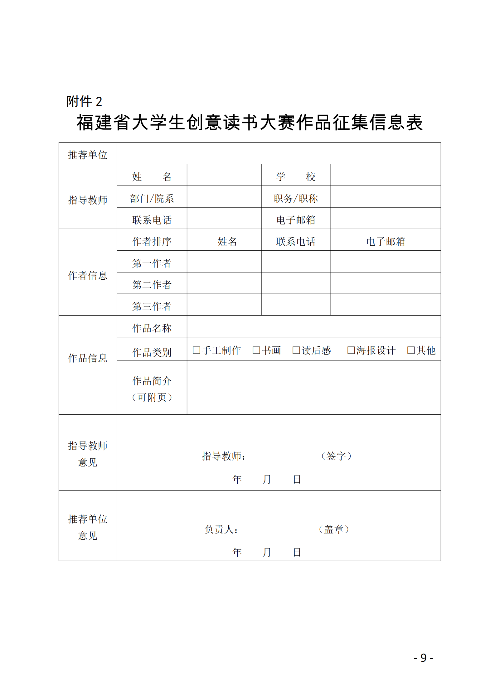 附件2 福建省老员工创意读书大赛作品征集信息表.docx