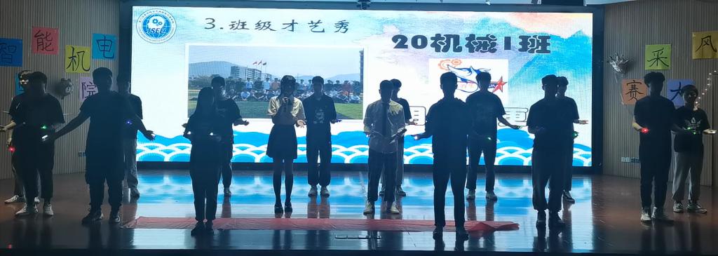 20机械1班用同学们的欢声笑语展示视频《一班的故事》和《加油,机器人》,他们巧妙的运用好道具呈现出一支“影子舞”并且结合一首《明天会更好》歌曲表达出脉搏舞动澎湃的激情,始终相信明天会更好。