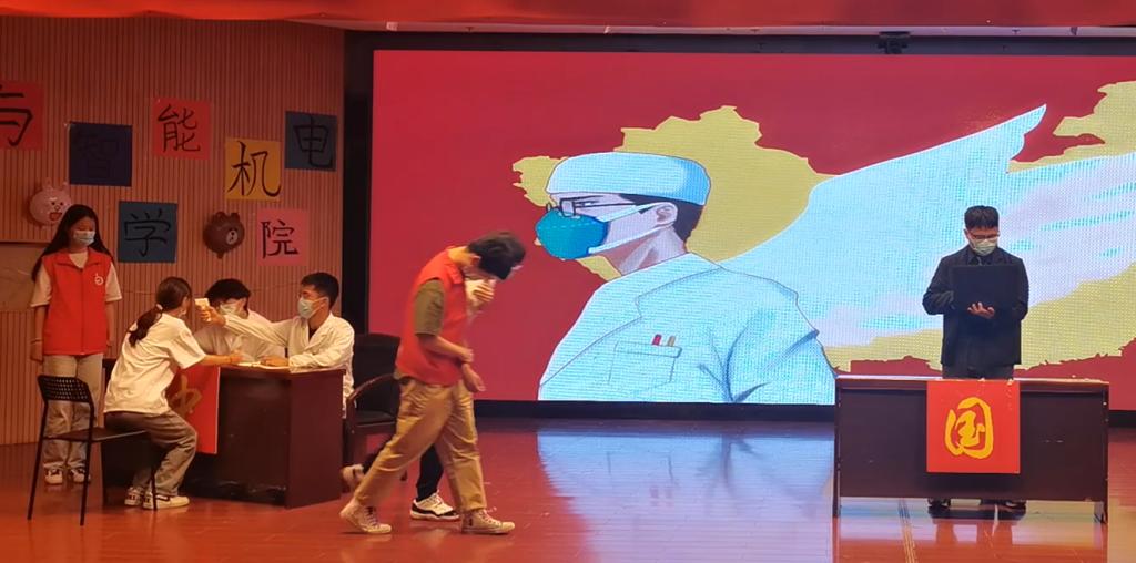 20物联网1班带来的视频《团结班风》和《我们的专业》进一步展现出团结的重要性,接着再现出武汉抗疫时的一线人员的工作场景,最后凭借全中国上下团结一心的力量战胜《疫情》。