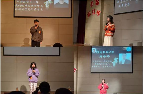 然后,由主持人介绍本次大赛的比赛规则,参赛选手按顺序依次上台,从自我介绍到分享拍摄视频的心路历程再到视频的播放欣赏,评委老师们根据视频内容、剪辑风格、选手表现等进行打分,待所有参赛选手展示完毕,再进行点评,最后现场公布比赛结果。在比赛过程中,参赛选手们对自己视频的激情解说向观众传达了对党的祝福、对疫情的思考、对创新创业的见解以及自我改变的历程,展现了她们精湛的视频剪辑能力以及临场应对能力。