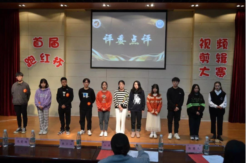 在所有参赛选手展示结束后,依次上台接受评委点评。此次担任评委的是跑红公司战略经理江真真和企划经理陈慧凡。江真真评委老师依次对参赛选手的作品进行了详细的分析,指出了优点和视频中需要改进的地方。此外,陈慧凡评委老师对各位参赛选手的视频进行剖析,分析选手的风格的同时补充了剪辑方面的知识和以后若从事剪辑可以发展的大致方向。参赛选手们在台上认真聆听了评委老师的意见,并认真的回答评委老师的问题。
