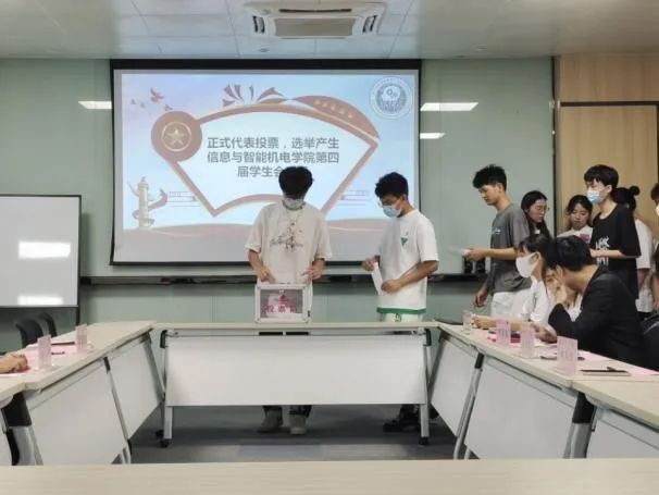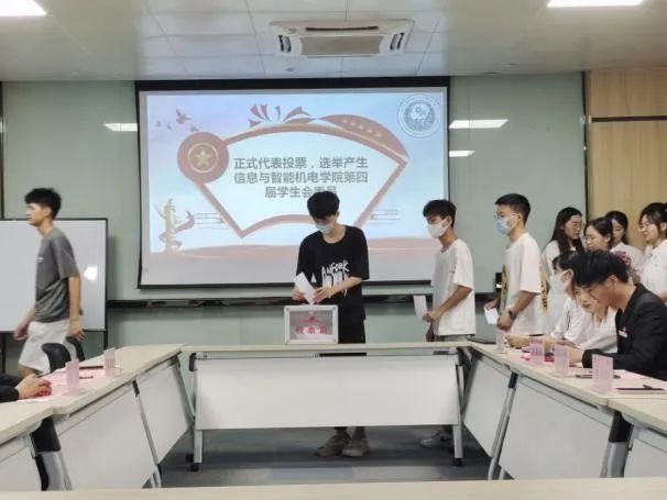 最后,员工会主席团候选人依次上台进行演讲,经过激烈的角逐,员工代表们以无记名方式进行了客观、公正、公平的民主选举,并在王亚凡老师和主席团的监票下最终选出两名主席:20通信工程1班卓尧、20通信工程2班蔡思容。