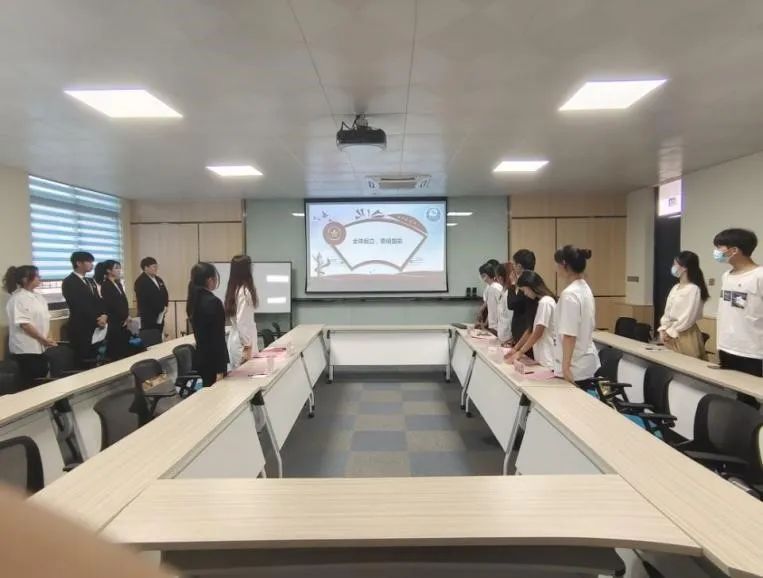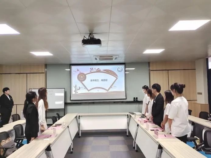 首先,全体师生起立奏唱国歌。