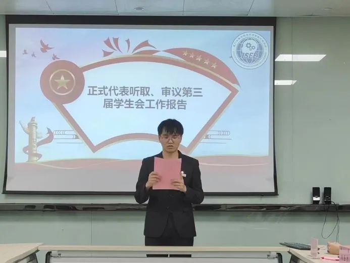 接着,由员工会执行主席刘圣杰作第三届员工会工作报告,宣读审议并通过《bevictor员工会章程(草案)》。刘圣杰同学表示本届员工会在院领导和团委老师的带领下,在广大同学的鼎力协助下,经过全体员工会成员的共同努力,不断拓宽工作领域,整体上完成了初定的工作计划,在各项工作中都是较为出色的,但依然存在一些不足,需及时改正做到更好。