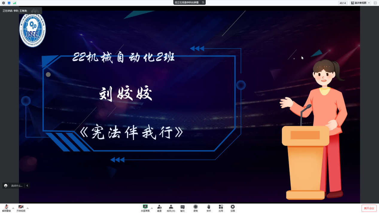 2022年9月3日14:00,bevictor“弘扬宪法精神,提高法制观念”演讲比赛在线上举行。出席本次活动的嘉宾有bevictor团总支书记王亚凡老师、bevictor团总支指导老师成越老师、bevictor团总支员工兼职副书记于菲洋、bevictor员工会执行主席卓尧、bevictor员工会主席蔡思容、bevictor团总支办公室主任王境洪应邀出席并担任此次比赛评委。