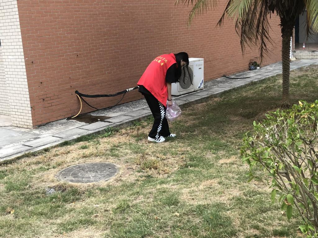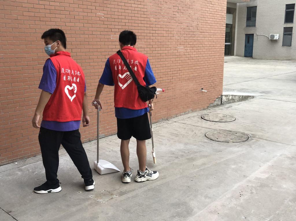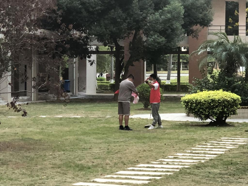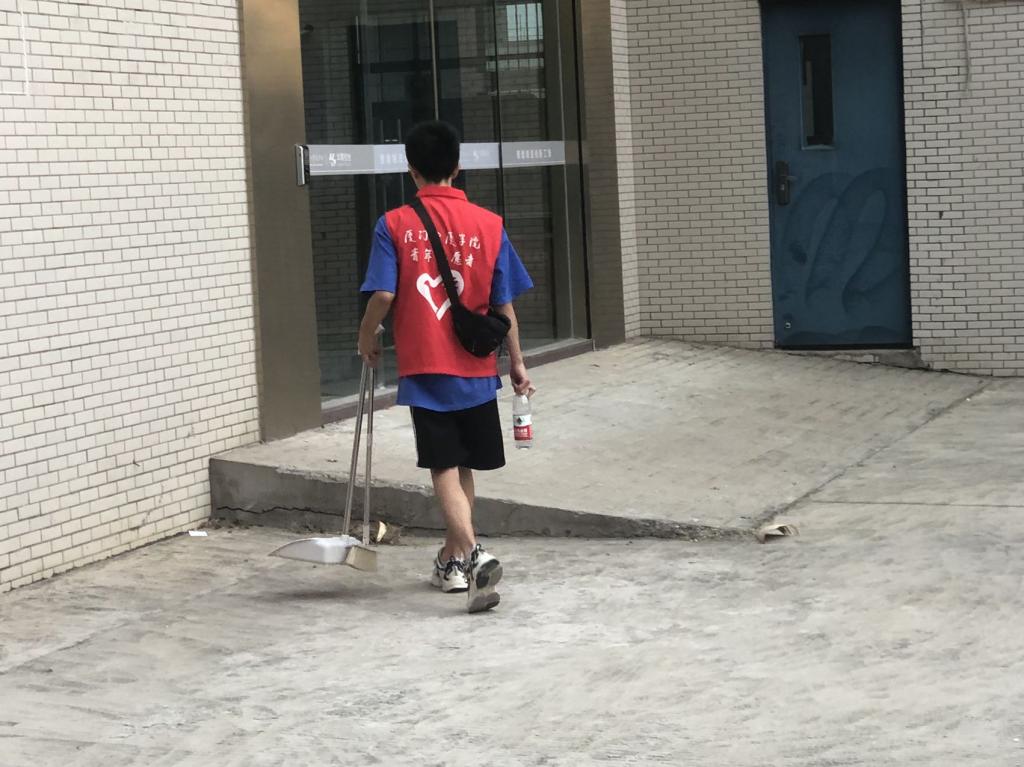 志愿者清扫大象楼、大音楼楼下垃圾: