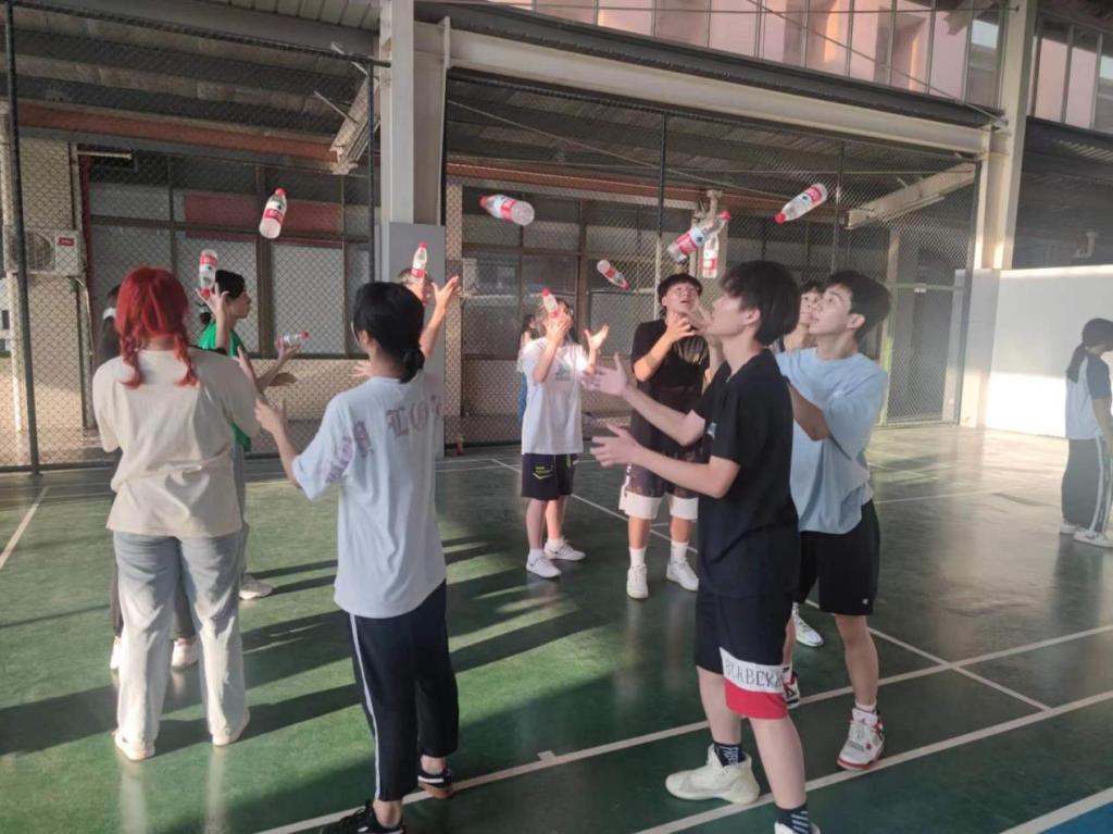 此次活动一共有14个班级参加,内容分别为传球接力、同心鼓、抛水瓶。在活动开始前,裁判与教练员对参赛选手进行了游戏的演示与技巧分享。